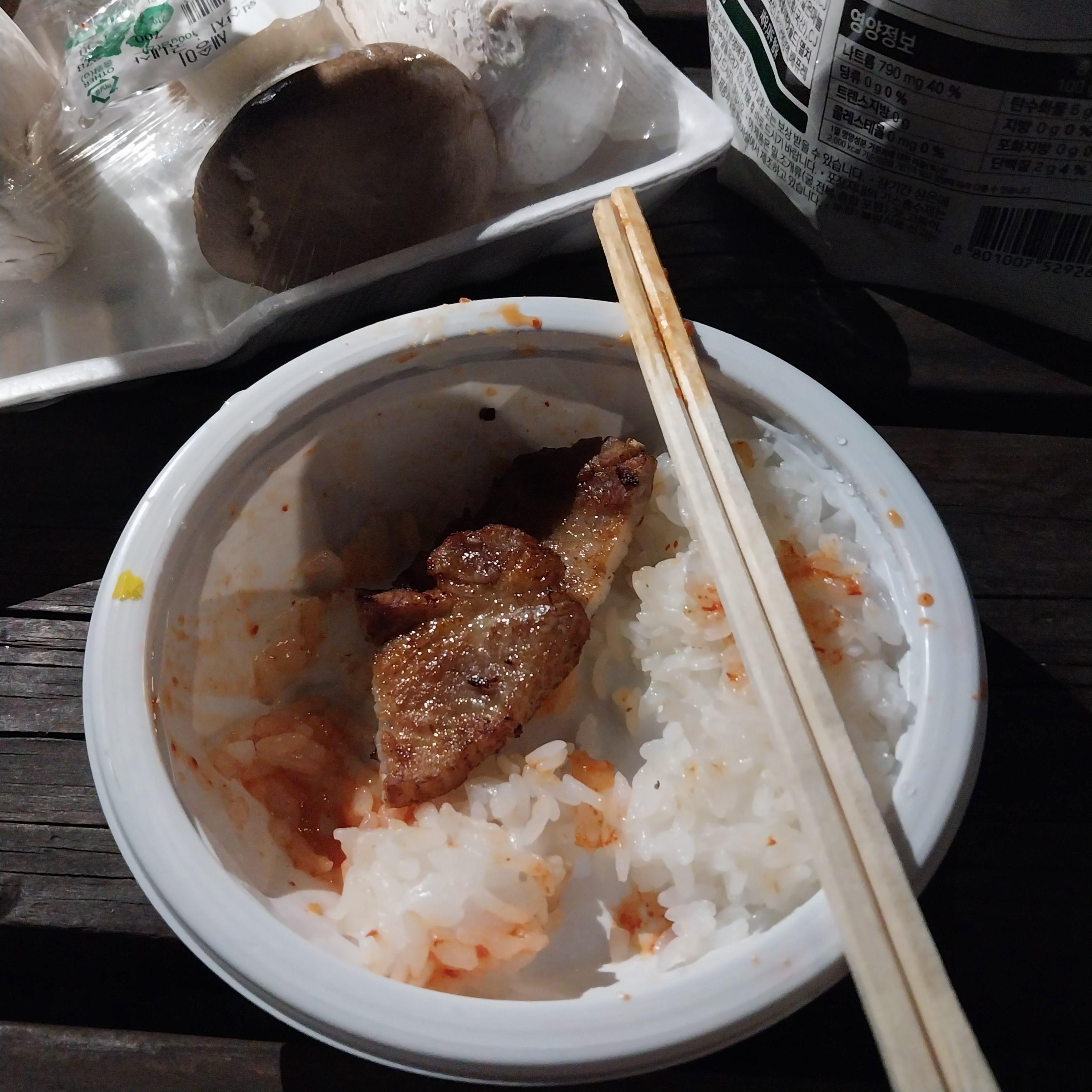 김치와 먹으면 정말 꿀맛이다. 숙소 도착하면 엄청나게 먹어댈 줄 알았는데 기진맥진이라 그런지 잘 들어가지는 않는다. 햇반 하나 정도면 충분히 배를 채울 수 있다.