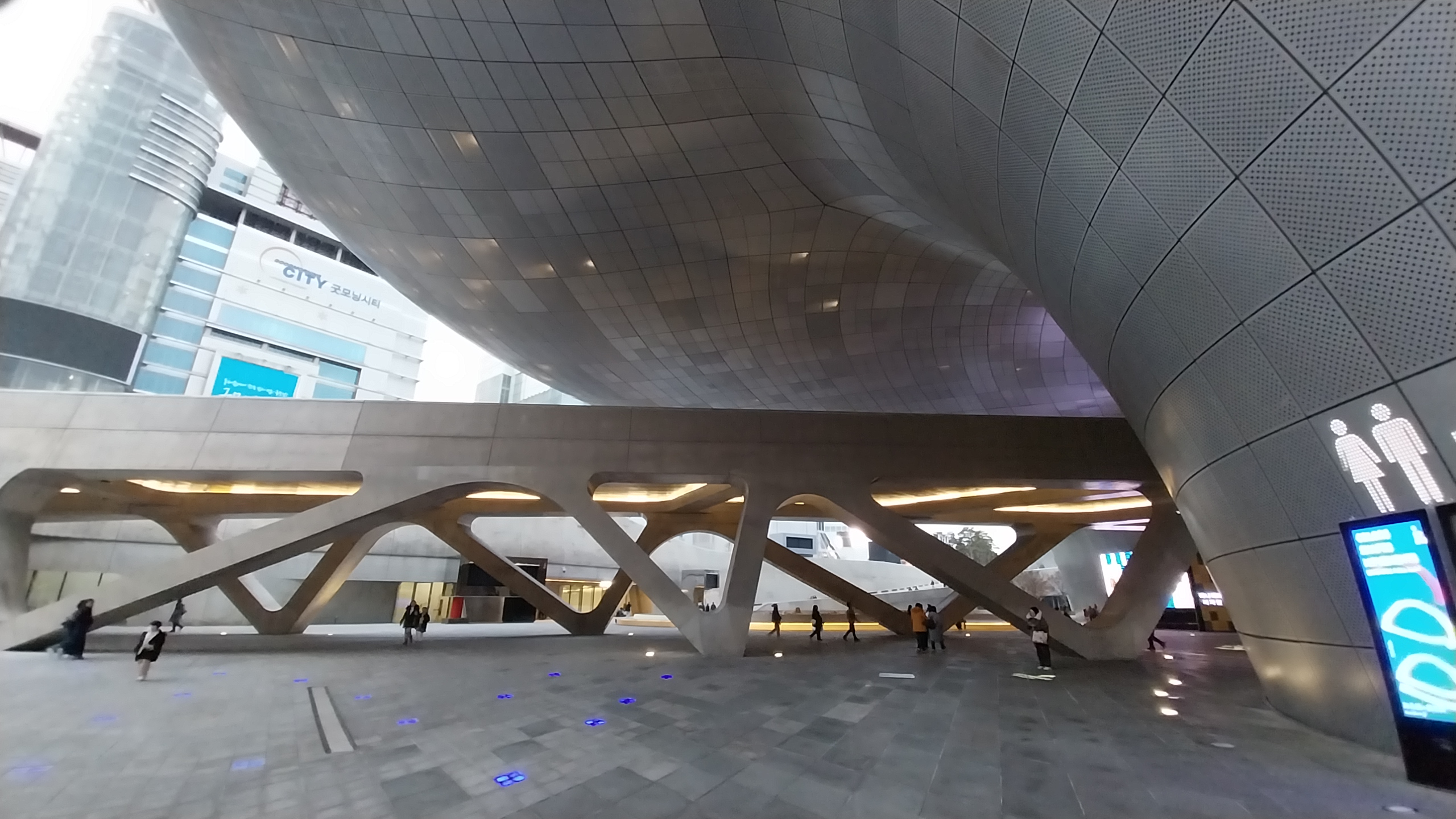 ddp건물 통로의 특징과 융합하여 추상학적 무늬가 만들어집니다.