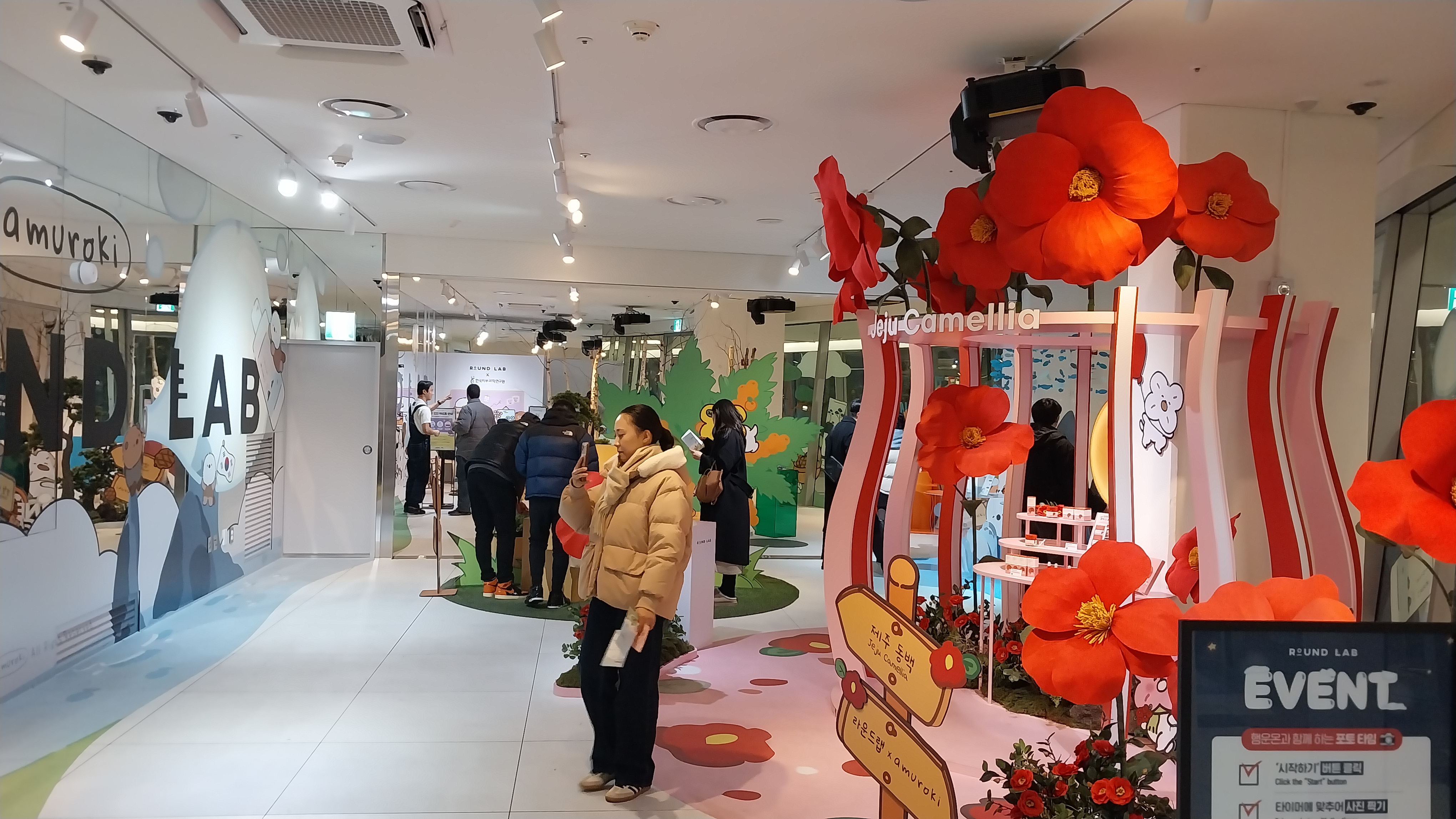 실내의 이벤트 홀에서는 화장품 브랜드와 콜라보 중인 팝업스토어가 있습니다. 스탬프 5개를 찍으면 샘플 화장품을 주는 이벤트도 하고 있어서 득템하고 집으로~