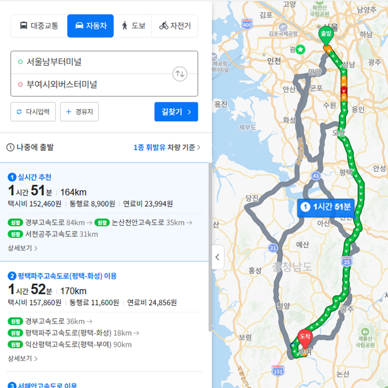 남부터미널에서 부여시외버스터미널까지