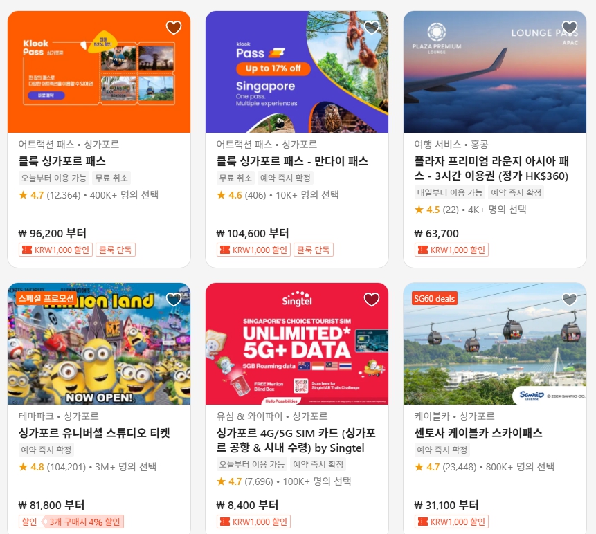 | 기타 | 싱가포르 유니버셜 스튜디오 티켓 | 83,200 |