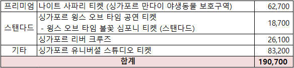 | 싱가포르 플라이어 티켓 | 44,500 | |